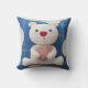 The blue pillow itself is adorned with white circular and stitched patterns, creating a cozy and inviting look. Made from soft, plush fabric, this decorative pillow is perfect for adding a touch of warmth and comfort to any room. Its cute and stuffed toy-like appearance makes it an ideal gift for loved ones, or a wonderful addition to your own home decor.