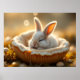 An adorable baby bunny resting peacefully in a warm, cozy natural setting. Soft lighting, gentle tones, and a dreamy atmosphere make this artwork perfect for creating a comforting and happy space.