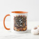 A warm autumn library scene featuring a curved bookshelf, steaming coffee cup, and pumpkins around the reading space. Perfect gift for book lovers, librarians, teachers, and anyone who enjoys fall aesthetic and cozy reading vibes. Ideal for autumn gifts, book club mugs, or personal reading corner décor.