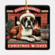 Elevate your holiday spirit with our vintage Christmas design starring a Boxer Dog in a retro art style, donning a Santa hat and sitting by a cozy fireplace. This heartwarming scene is complemented by the message 'Boxer's Warmest Christmas Wishes.' Embrace the warmth and nostalgia of the season with the charm of a Boxer by the hearth, and make your holiday even more special. Celebrate Christmas with a touch of vintage coziness and the joy of your furry friend's wishes.