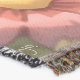 A quality printed throw has its advantages. This is a much finer weave throw than its loopier cousins, and though lighter, it is worth the investment for custom room accessorizing. The back is much prettier than the typical brown, and the fringe on the long sides very vivid, the selvage nicely done. Before photographing, I washed the throw in cold water, delicate, with a thicker woven throw the same size. On tumble dry low, this throw was dry in half the time as the other. This is a very practical quality if you use throws for furniture covers or to wrap up in frequently. The sleekness of the fabric makes it a great layer for accenting or protecting without the feeling of sitting on too much stuff. Perfect for napping or when you feel a light chill coming on. The color printing is beautiful and on this fabric, matched the design and color of my Photoshop image. This is an advantage for blending room fabrics and colors. The fringe on the short sides prints the colors from the design image and therefore varies from the side fringe. I streaked a white fractal line through the plaid pattern to give the illusion of weaving. This printed as crisp as an illusory thread, and put some white in the short side fringe, showing another advantage of print vs loomed- for artistic purposes, line lines, detail, and color integrity can be planned and preserved. My loomed throws have color limitations and more of a needlepoint texture. Print throws reproduce an exact image. The throw felt a little stiff straight out of the package, but this went away in the first delicate wash. Of course I searched the wash water for ink or bleeding and there was none.