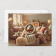 This charming postcard captures the essence of winter coziness with a delightful image of a groundhog wrapped snugly in a warm blanket. The groundhog's content expression and the invitingly soft textures of the blanket and surrounding room evoke feelings of comfort and relaxation. The warm color palette, featuring soft browns, creams, and touches of peach, adds to the overall sense of tranquility. Perfect for sending winter greetings, thank you notes, or simply a touch of heartwarming cheer, this postcard is sure to bring a smile to anyone's face. It's a sweet reminder of the simple pleasures of staying warm and cozy during the colder months.