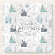 a down-home Christmas. Available in two boho color palettes, this version features shades of teal, steel blue and soft beige. We've provided optional 'Season's Greetings' text and you can personalize this festive Christmas paper coaster with your name(s) and date. Search ID985 to see all the coordinating products with this adorable Christmas pattern.