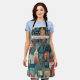 This custom apron features a beautiful folk art village in a cozy, Nordic style. The intricate design captures the warmth of hygge, adding a touch of comfort and charm to your time in the kitchen. With its vibrant colors and whimsical little houses, this apron is a stylish way to protect your clothes while cooking and baking.