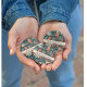 This custom pin button features a beautiful folk art village in a cozy, Nordic style. The intricate design captures the warmth of hygge, making it a charming and unique housewarming party favor. With its vibrant colors and whimsical little houses, this pin is a small, stylish way to thank your guests for celebrating with you.