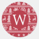Cozy Knit Red Sweater Pattern Monogram Christmas Classic Round Sticker