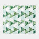 Modern fleece blanket design featuring mint green and tropical leaves triangles pattern.