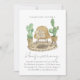 Cozy boho housewarming invitation features a neutral home decor illustration with simple cactus potted plants and modern hand lettering.