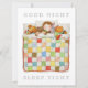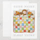 Send a special message with this COZY QUILT 6.5"x8.75" flat card. Easily change "GOOD NIGHT SLEEP TIGHT" by choosing "Personalize this template", then typing what you'd rather have it say. Maybe add a child's name. Add text on the back with Edit Design, then Add Text. * A sweet child is snuggled in bed under a cozy colorful quilt with his animal friends; Dog, Bunny, Kitty and Bear. Kitty has his toys, and Dog has his biscuits. They were all drawn by hand with colored pencils. * Other cards, and matching products are available in the COZY QUILT category of my shop. ** If you'd like to transfer this design to another product type, shape, or size, please check my shop first to see if I have one already done, because I'll have fiddled with it to make the design fit just right and it will save you the bother. Sometimes designs transfer ok, sometimes they don't. Just fyi. If you need help or have a question please message me.