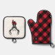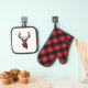 Cozy Red & Black Buffalo Plaid Deer Monogram Oven Mitt & Pot Holder Set