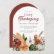 Celebrate the season of gratitude with this cozy Thanksgiving/Friendsgiving dinner invitation. Designed to set the tone for a warm and welcoming gathering, this invitation is perfect for inviting friends and family to share a special meal together. With its heartfelt message and inviting style, it’s ideal for holiday dinners, Friendsgiving celebrations, or any autumn get-together filled with love, laughter, and thankfulness. The design features fall foliage, pumpkins, gourds and dried indian corn in vibrant watercolors on a lovely arch shaped card.