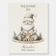 A heartwarming winter baby shower invitation featuring a soft, jolly Santa sitting by a crackling campfire, surrounded by pinecones, fir sprigs, and rustic charm. With earthy taupe tones and hand-painted watercolor textures, this design brings a cozy woodland vibe—perfect for a magical and peaceful holiday celebration in honor of the newest arrival.