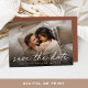 Announce your wedding date in unforgettable style with these simple and chic photo save the date cards, featuring a full bleed horizontal or landscape oriented photo with "save the date" overlaid in white script lettering along the bottom. Your names, wedding date, and wedding location appear beneath in modern lettering. Personalize the back with additional details, such as your wedding website.