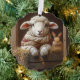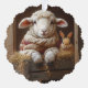 Cozy Sheep and Rabbit in Barn with Flowers Ornament Card