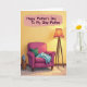 This card shows a cozy indoor corner lit with a gentle golden glow, like a quiet moment shared with someone you care about ❤️. A plush magenta armchair sits slightly off-center, paired with a teal cushion and a pale blue throw draped loosely over one arm, suggesting someone just stood up after a long, friendly chat. Behind it, a soft buttery-yellow wall with a subtle painted texture warms the scene, making the space feel tender and welcoming. On the right, a tripod floor lamp with a peach-striped shade spreads a calm pool of light across the tiled floor, as if keeping company late into the evening. On the left, a small wooden magazine holder rests nearby, hinting at slow mornings and easy conversation 🌼. Across the upper area, the message “Happy Mother’s Day To My Step-Mother” appears in a casual handwritten style, set on a soft pink swatch, with the lettering in a dark, easy-to-read color. The lamp’s glow fades gently toward the edges, while the chair’s rich magenta fabric remains the strongest color in the room.