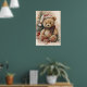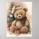 Cozy Teddy Bear with Santa Hat and Christmas Tree Poster