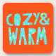 This bright graphic features the phrase "Cozy and Warm" in bright blue with snowflakes. | Blanckslate | 141048D