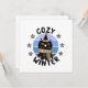 A cute owl wearing a winter scarf and the big words happy winter. For everyone, who loves winter vibes and cute animals.