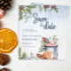 Cozy winter design watercolor featuring modern calligraphy script, holly and berries, hot chocolate or cocoa, marshmallows and candy cane, evergreen tree twigs on snowly background. The text can easily be personalized for a unique one of a kind design for your special day.