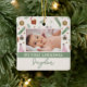 Cozy Winter Pink Green First Christmas Photo Ceramic Ornament