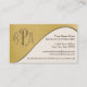 PAPER: Shown on pearl paper, which has a soft luxurious shimmery finish. COLOR PALETTE: Gold metal look with soft cream tan background and white text. DESIGN COLLECTION: A simple, classy, clean lined, modern and yet classic and upscale business card design, graphically designed by Audrey Jeanne Roberts. A sweeping dramatic curve sets apart the CPA 3d style raised appearance monogram style logo on a faux gold metallic looking background. Your accounting firm name, information and your name are easily personalized using the custom template field. On the reverse side is a strikingly elegant repeat of he CPA logo with "Certified Public Accountant" below a printer's ornament style dividing line. You can change the background to any color using the customize it button and selecting "edit" button, drop down menu select "background" and then select your color. You can also change the text color in similar fashion.