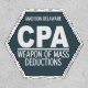 “Weapon of mass deductions”. You can change the background color of this item if you wish. See my store for more items with this design.