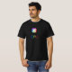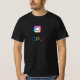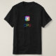 The bright colors stand out sharply against the black fabric, giving the shirt a modern, tech-inspired look.