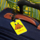 Hilarious cartoon duck face luggage tag design. Customize your initials on the front and personal info on the back. Fun colorful design helps to identify luggage quickly.