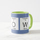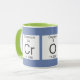 Enjoy a cup of coffee or tea in this stylish Blue / Green cup spelling Cr O W with the periodic table.