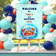 Cute Birthday party welcome sign foam board poster for a pool, waterpark, beach, summer 1st or any boy's Birthday party with an adorable happy crab on the aqua blue background. Easily personalize the text and enjoy your summer celebration :) - Kate Eden Art