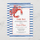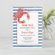 This delightful whimsical engagement invitation card features a hand-painted watercolor Crab in a vibrant and playful style with watercolor blue and white stripe background. The overall design is both elegant and whimsical, making it a perfect choice for couples who want to share their engagement news with a touch of personality and charm.
