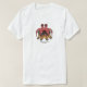 The shirt is good quality and fits just fine, but the colors of the printing are not as bright as in the sample photo. Not the best. The colors are a lot brighter in the sample photo; when I received the shirt they appeared faded. The red looks a little more pink and the blue is a lot lighter. N.B. I did not wash the shirt yet.