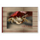 Image of small crab in a red leaf coming out to say "HELLO", or anything you'd like him to say with abstract background. Great for Birthdays and Dinner invitations. Just customize. Choice of standard or small and matte or semi-gloss paper.