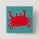 Square button with an image of a red cartoon crab on blue. See the entire Shipwreck Apparel collection in the PARTY FAVORS section.