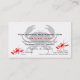 This design uses a large, grey, central silhouette of a crab on white for the background image. Two red shrimp silhouettes accent the left and right lower corners. This is a great design for a seafood restaurant looking for a simple business card with the important information and seafood symbols which make it stand out.
