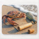 A crab on the beach, wearing stylish glasses, eagerly reading a message that's been sealed inside a wine bottle
