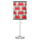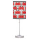 Table lamp with image of red crabs against a background of black and white newsprint.