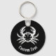 White tribal crab icon. Custom background color. Custom text on both sides.