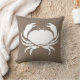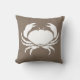 part of the ocean themed decor CRAB WHITE on colored pillow on one side and white stripes on back. Design by Sandy Closs