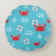 A happy crab mascot with big eyes. He is posing with his big claws up in the air, but is very friendly and cute.