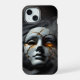 Give your iPhone 15 standout protection with this dark luxury tough case featuring a cracked porcelain mask resting on rich black sand. Golden fractures gleam against dramatic contrasts of light and shadow, creating a moody, cinematic aesthetic that draws attention.