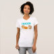 My overall review is that the T-shirt is nice, it fits true to size however the font is significantly smaller than advertised and you can't read it. The printing is unreadable and there is a strain to read it. It does not look like the advertised product. Maybe the shirt color is darker or a larger more visible font should have been used. Photos with and without flash and font is barely legible.