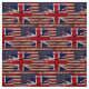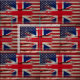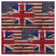 Cool fabric with a British American fusion design featuring a print of the American flag and the Union Flag merged together on rustic wood with paint peeling off.