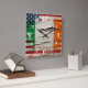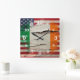 Cool square wall clock for a proud Irish American! Perfect for an Irish pub. The American flag, painted on wood with chipped paint, and worn in the middle so that the Irish flag peeks out.