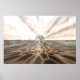 Light bursting out of a cracked sphere, casting light attenuation effects through a dusty atmosphere