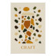 The poster evokes the world of artisanal beer through a broken composition of terrazzo. On a textured cream background, colorful fragments float harmoniously, each symbolizing an ingredient or a feeling related to beer: amber for malt, olive green for hops, off white for moss, dark brown for woody aromas, and metallic gold for bubbles. In the center, an abstract shape recalls a stylized glass without sharp contours, simply suggested by the arrangement of the splinters. The word "CRAFT" is inscribed with an elegant and fine gold typography, discreet at the bottom right. Palette: cream, amber, olive, golden, brown, off white. Textures: granite, marble, reconstructed stone look. Atmosphere: artisanal elegance, modern refinement.