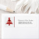 Craft checked red and pink Christmas tree with subtle dotty background on festive return address labels.