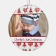Craft checked red and pink Christmas trees and hearts pattern on baby's first Christmas tree ornament to personalize with your photo and text.