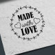Made With Love Rubber Stamp - An incredibly cute rubber stamp with a leaf wreath surrounding the message "Made with Love" decorated with two little hearts. The stamp you want to mark your hand crafted goodies for business or just as gifts for your friends. Don't forget to check our craft and cooking stamp collection for more fantastic options.
