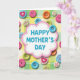 Designed with a craft-inspired look, this card centers on a puffy, cloud-shaped label edged in scalloped pink with tiny green dashed lines that resemble stitching. In the middle of that white label, “HAPPY MOTHER’S DAY” sits in friendly blue sans-serif letters, drawing the eye like a gentle note meant for someone you adore ❤️. Around the label, a scattered ring of colorful round fasteners adds depth, with soft shadows that make them look slightly raised and touchable. The background is a light plaid wash of pastel yellow and fresh green, giving the scene a sunny, springtime feel 🌼. The fasteners come in soft blues, bright pinks, calm greens, and warm oranges, arranged like a cheerful cluster gathered close together. A few have extra details—one pale blue circle shows a simple smiling face, another creamy one carries a pink heart outlined in white, and others include small flowers or tiny winged creatures with little golden star accents. The pink scalloped border wraps the central white label, while the blue text stays neatly centered inside it.